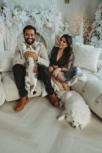 Our love story is made up of the small, meaningful moments—like cooking together in our kitchen, laughing at our inside jokes, or chasing after our cats when they’ve stolen something off the counter. Zaiaad often cooks steak for dinner—his way of showing love—and he never lets Shirin lift a finger when she’s not feeling well. During hard moments with her health, he’s stayed home from work just to make sure she’s safe, comfortable, and supported. His quiet strength has grounded our life. For Shirin’s birthday, Zaiaad gave her a Little Mermaid card—not just because it’s a childhood favourite, but because he remembered her stories of watching it every night with her dad. Those are the things we hold sacred: the memories, the meaning behind the gestures, and the way we make each other feel seen. We call each other silly names—like “Chaos Cat,” which Zaiaad lovingly calls Shirin because she’s full of energy and always has a new idea or project in motion. We balance each other beautifully: one of us brings the spark, the other brings the calm. And together, we’ve built a home full of love, laughter, faith, and a deep respect for one another.